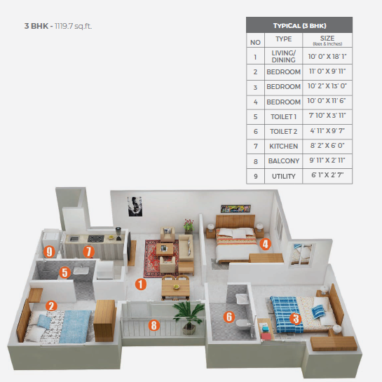 · 3 BHK (1120 Sq.Ft.) – 44 Lacs+